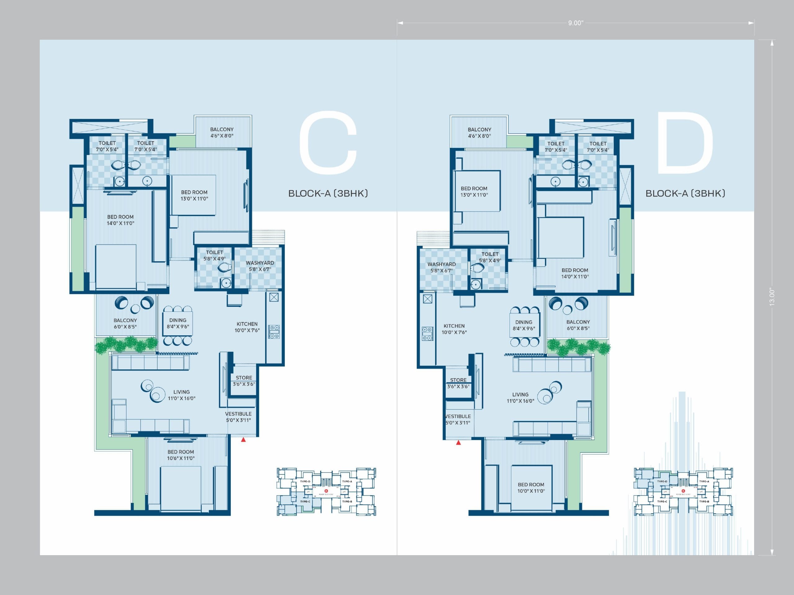 Spacious Apartments: Designed with optimal layout, light, and ventilation.